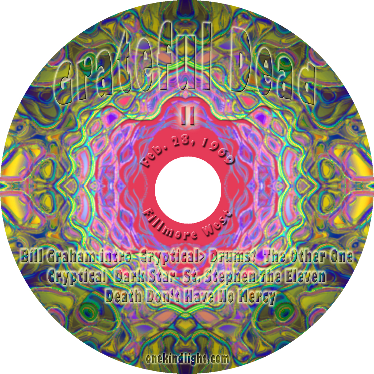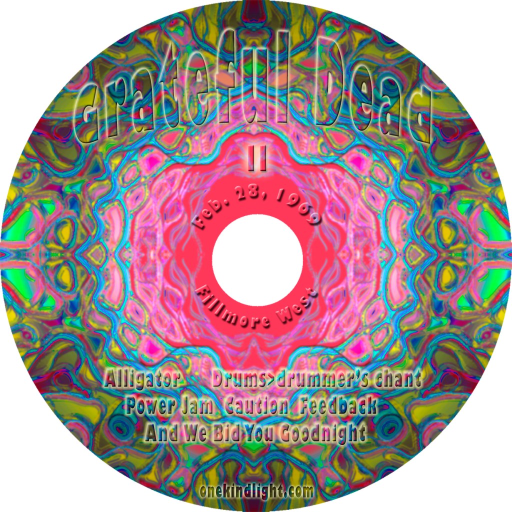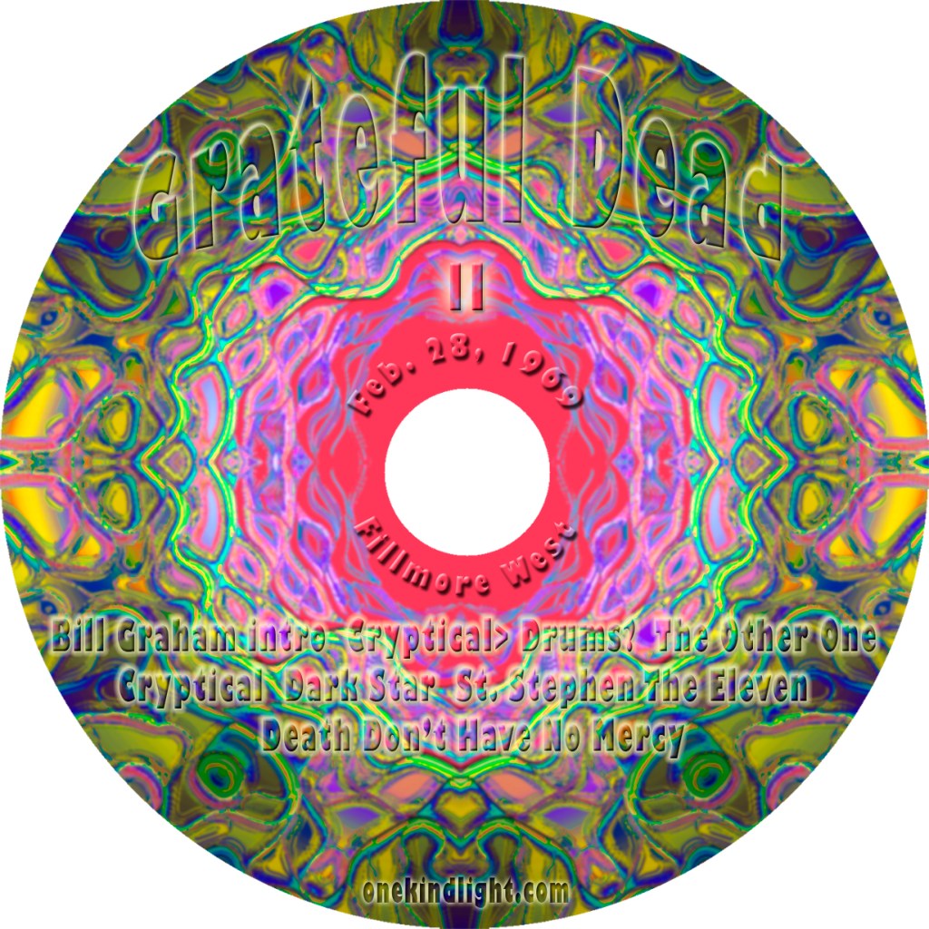 February 28, 1969 Set One: Morning Dew, Schoolgirl, Doin’ That Rag, King Bee, Lovelight Set Two: Cryptical>The Other One>Cryptical>Dark Star>St. Stephen>The Eleven>Death Don’t Have No Mercy, Alligator>Caution>Feedback>We Bid You Goodnight (Two Cd’s) Share this: Click to share on X (Opens in new window) X Click to share on Facebook (Opens in new window) Facebook Like Loading...