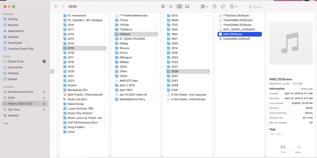 As mentioned, I have folders of music divided into their respective months. Some of the years have been duly edited, the songs named, submitted or not to Bandcamp, but as can be seen in the nomenclature, have been finalized.